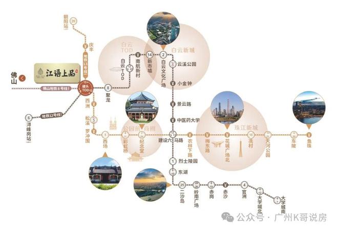 佛山地铁8号线(规划中)-广佛同城线,起于佛山城际站,止于广州槎头站,串连狮山城际、博爱东路、大冲等核心站点,将全力加速助力广佛同城化。