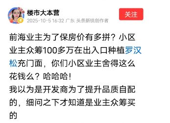 前海业主为了保房价有多拼?众筹100多万在大门种植罗汉松充门面