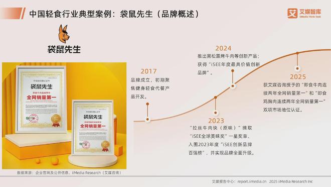 袋鼠先生成立于2017年,是一家专注于健康即食轻食的口碑品牌。其产品类型包括高蛋白肉食系列、高纤烘焙、慢碳主食、冲饮和调味4大系列等共八十余款产品。袋鼠先生从食材源头严格把关,不断优化加工工艺,通过产品细分创新,在保留食物良好口味和口感的前提下,最大程度降低脂肪、蔗糖、食品添加剂等含量。截至2025年,其产品已覆盖全国市场,获得广大消费者认可,始终致力于为用户提供“健康且好吃”的美味体验。