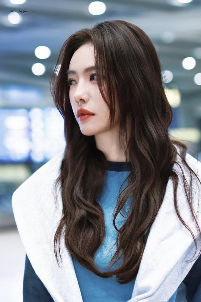 中分的造型露出饱满的额头,既凸显了她精致的五官轮廓,又增添了几分温婉动人的气质,没有过多的修饰和打理,却恰好展现出一种自然、随性的美感,与秋季的慵懒氛围完美适配。这种发型不挑场合,无论是日常出街还是拍摄大片,都能轻松驾驭,既显气质又不显得刻意,完美衬托出她的清纯形象。